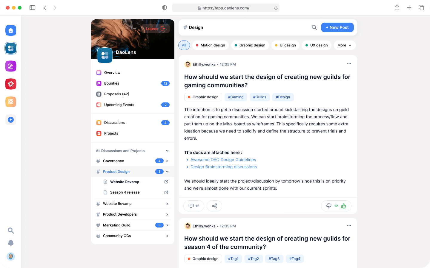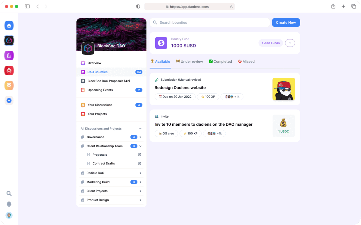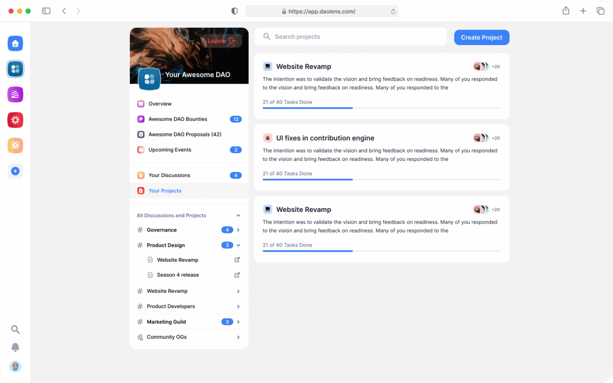 Upgrade to the DAO ManagerCombining everything from project management, payouts, discussion management and rewards.